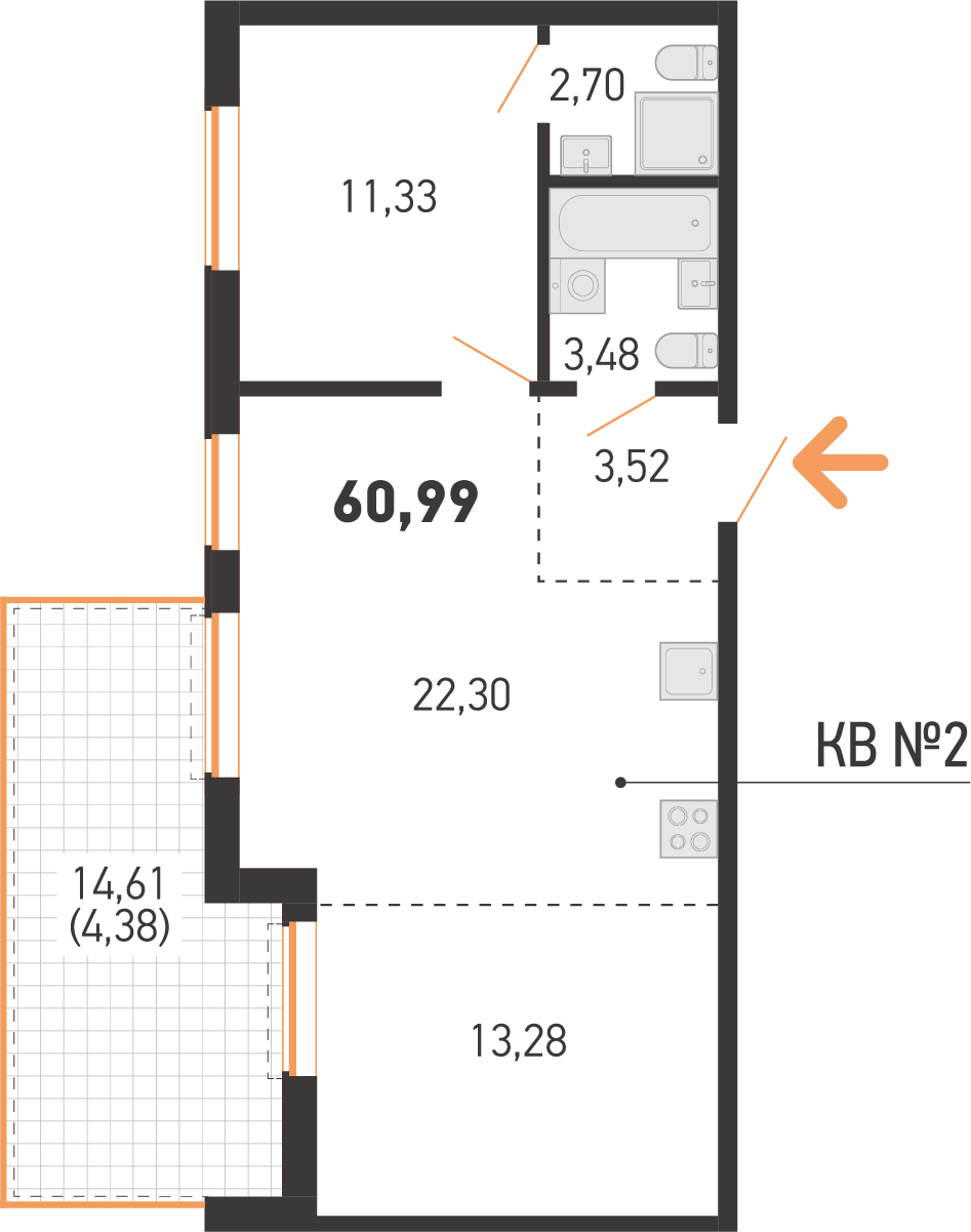 60.99 м2