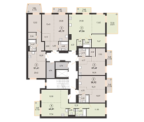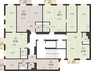 3 комнатная 7 этаж 61.49 м2