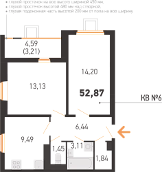Площадь 52.87 м2
