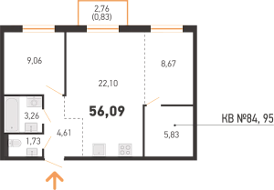 Площадь 56.09 м2