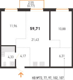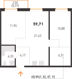 Площадь 59.71 м2