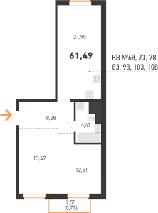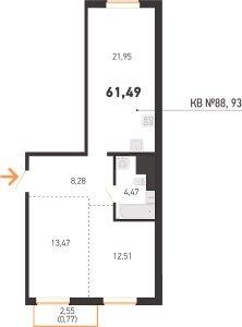 Площадь 61.49 м2