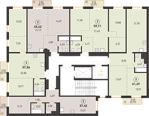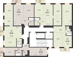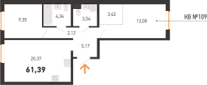 Площадь 61.39 м2