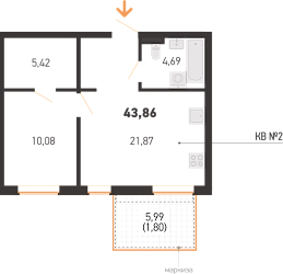 Площадь 43.86 м2
