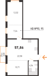 Площадь 57.86 м2