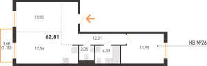 Площадь 62.81 м2