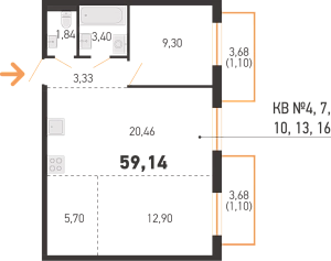 Площадь 59.14 м2