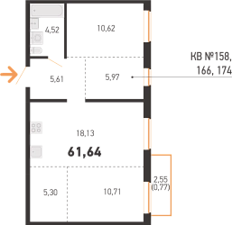 Площадь 61.64 м2